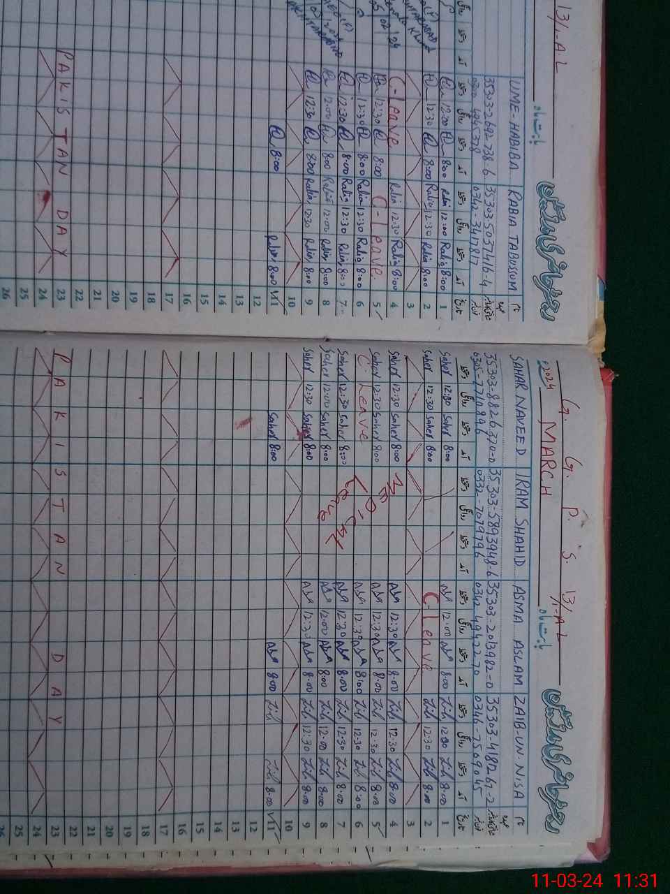 | Leave | Duty | Absent | Maternity | Medical | Ex- Pak |