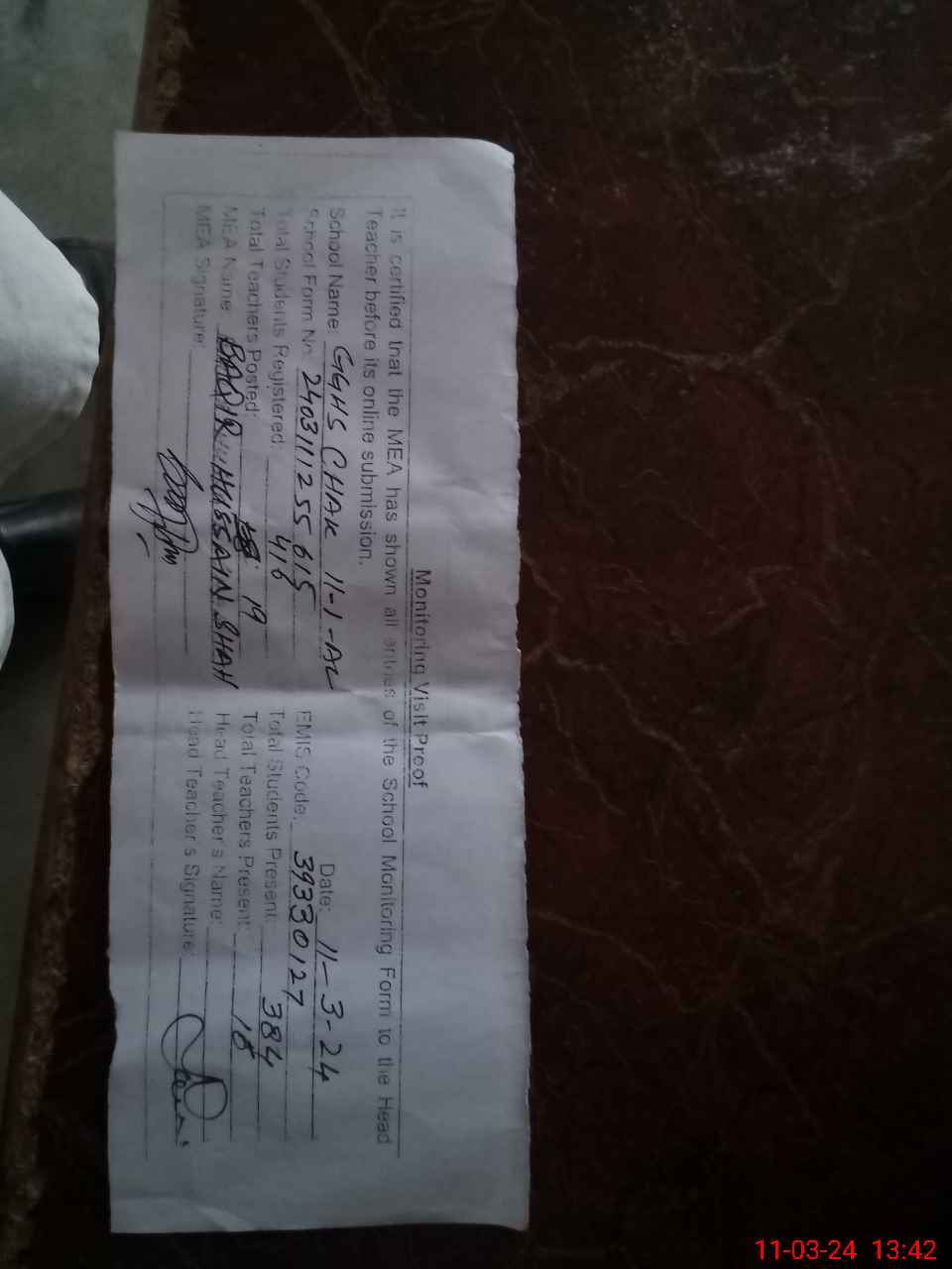 | Name: AM**** BI**** Designation: (School Headmaster's/Headmistress's) SST GEN Phone/Cell Number: 03**** |