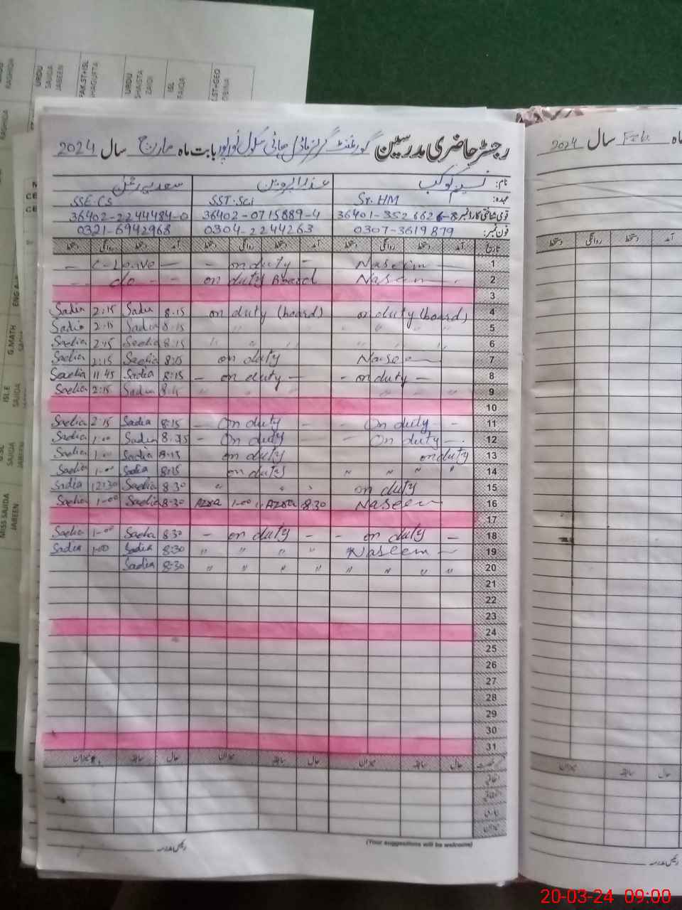 | Remarks (Use Separate Page if Required): 9th and 10th classes on Annual Exam as per instruction from DMO Pakpattan office all student are show present Two new class rooms in primary portion window glass not available Sealing Fan only 5 against 10 sealing Fan | |||||