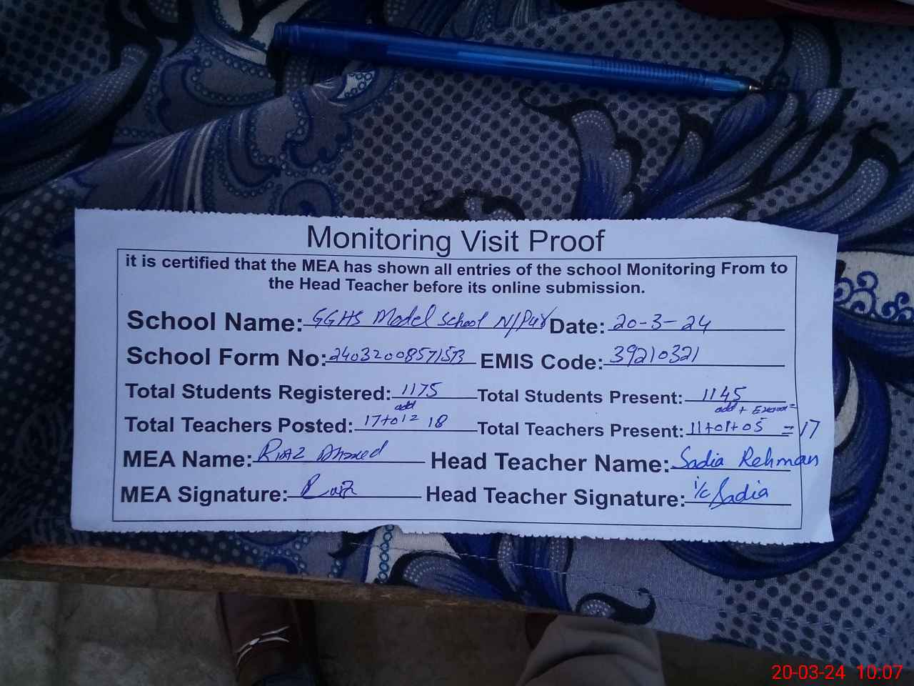 | EMIS Code: 39210321 | Name of School: GGHS MODEL ADDA NOOR PUR | |||