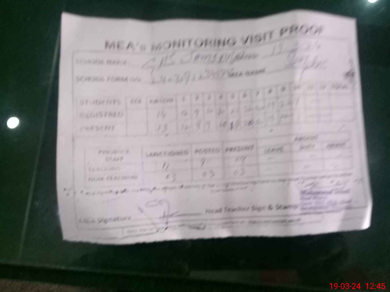 | Attendance Register | Head Teacher | MEA with School | Visit Proof |
