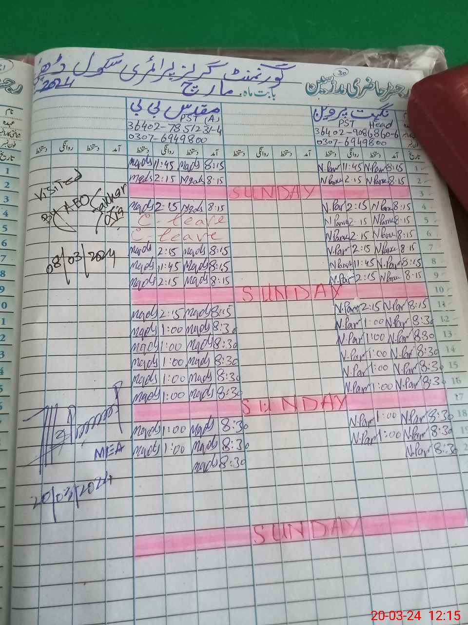 | Name: Sa**** Mu**** Designation: (School Headmaster's/Headmistress's) PST Phone/Cell Number: 03**** |