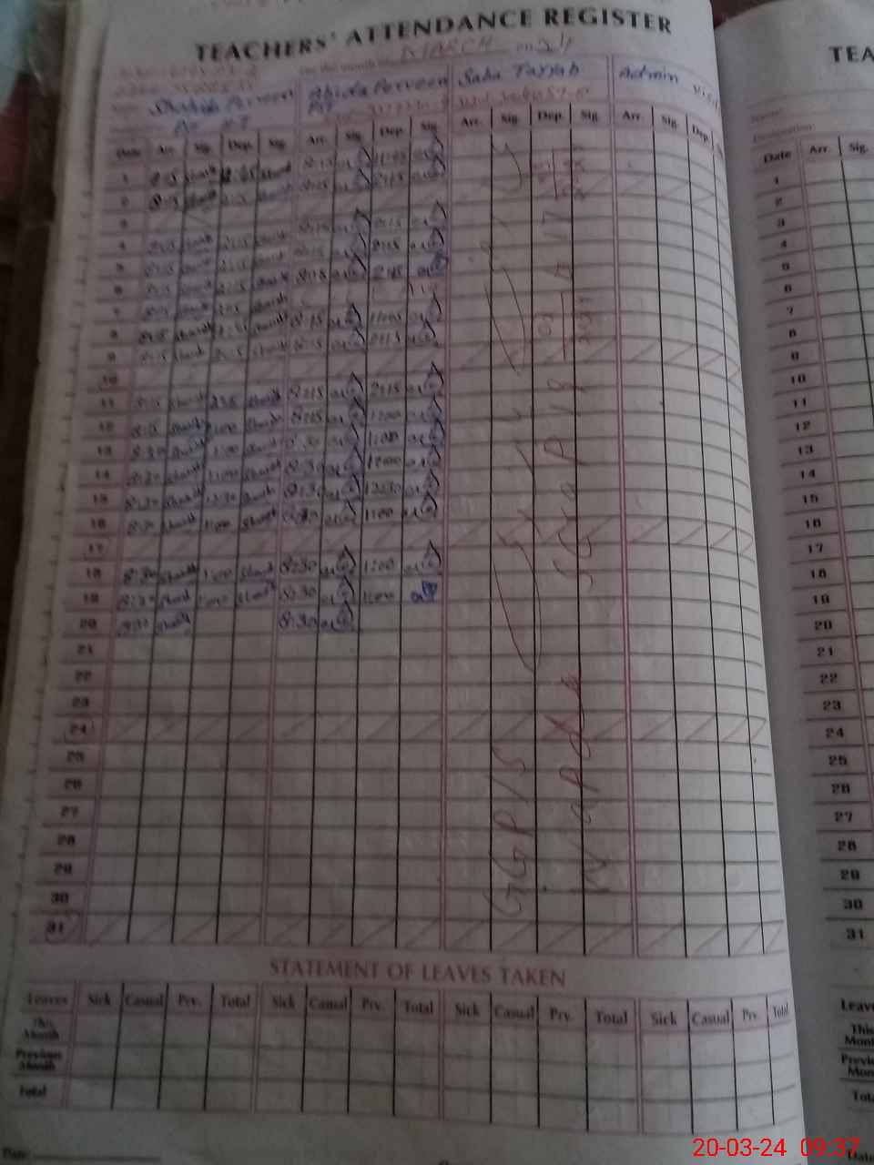| 31**** | Sa**** Ta**** | PST | Regular | 0 | 0 | 29 | 0 | 0 | 0 | 0 | 0 | 0 | Absent (Un-Authorized) |