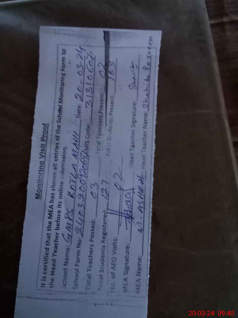 | EMIS Code: 31310607 | Name of School: GMPS KOTLA MAHI | |||