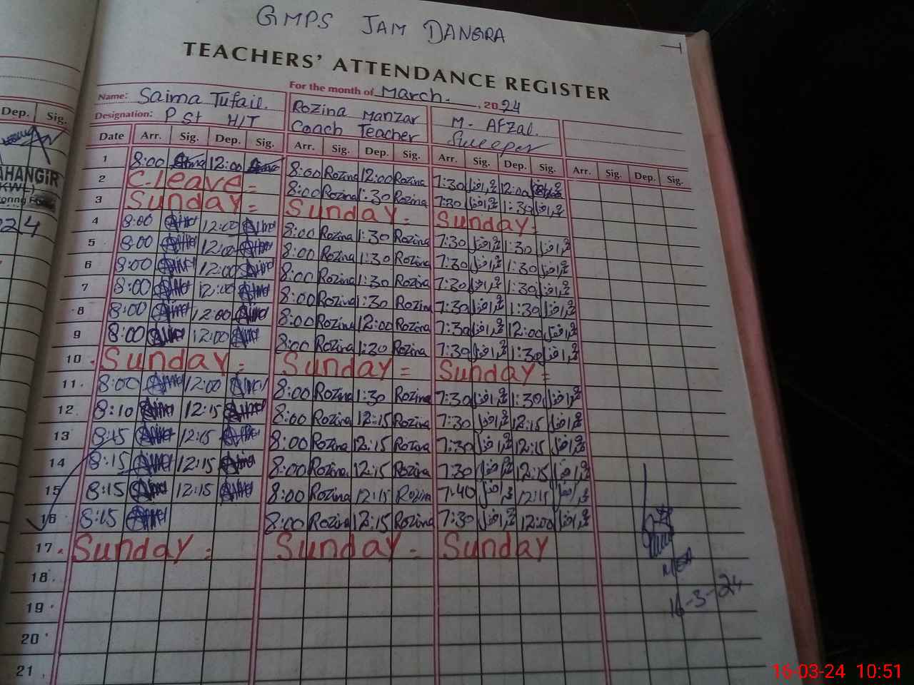 | Name: SA**** TU**** Designation: (School Headmaster's/Headmistress's) PST Phone/Cell Number: 03**** |