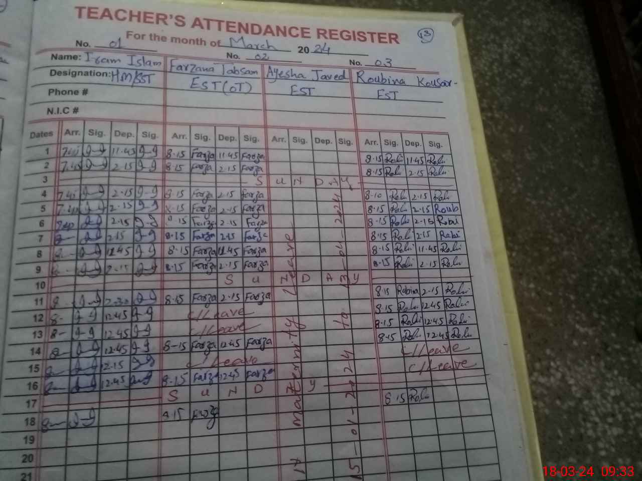 | 33**** | Sh**** Ra**** | PST | Regular | 29 | 0 | 0 | 29 | 0 | 0 | 0 | 0 | 0 | Maternity |