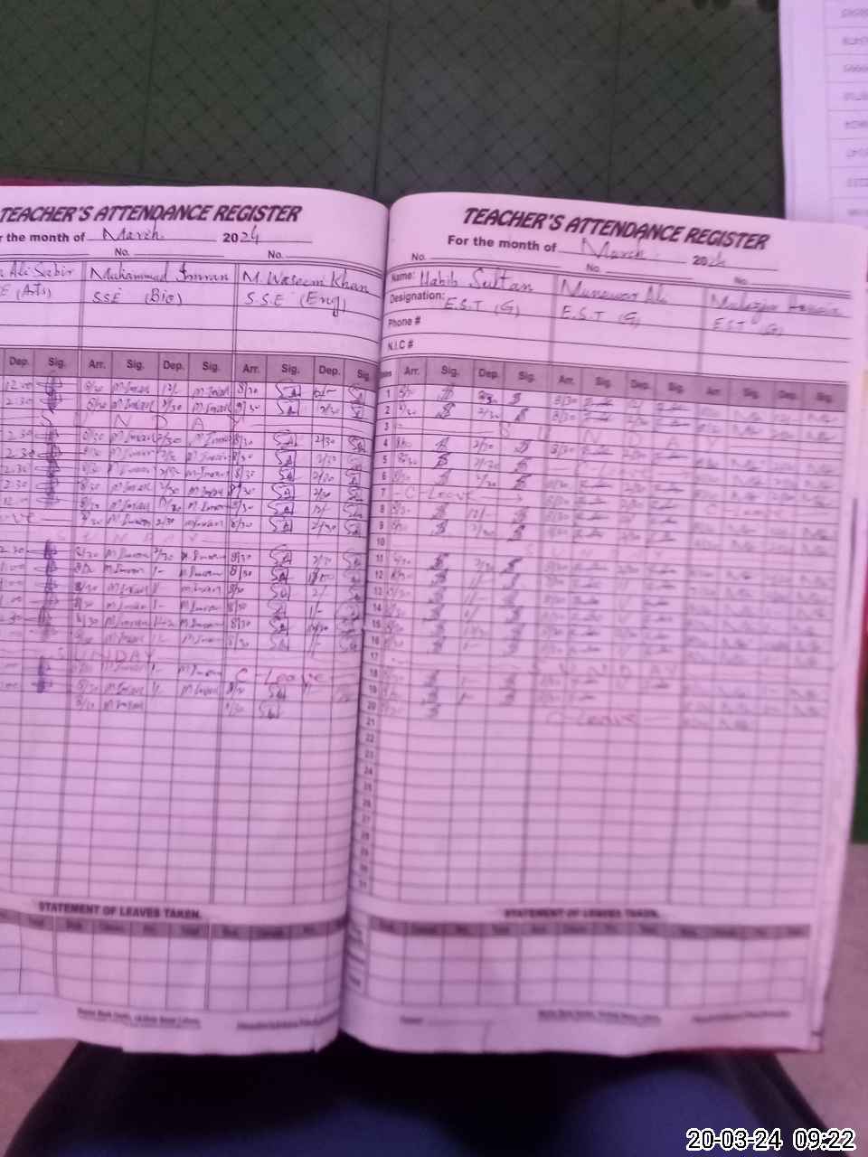 | CNIC | Full Name | Designation | R/C | Absence During Last Calender Month |