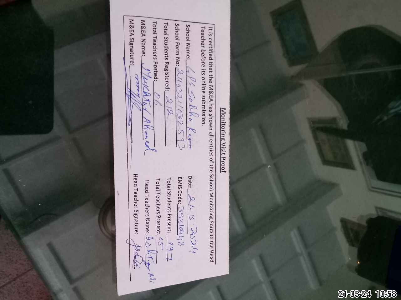 | EMIS Code: 39310448 | Name of School: GPS SOBHA RAAM | |||