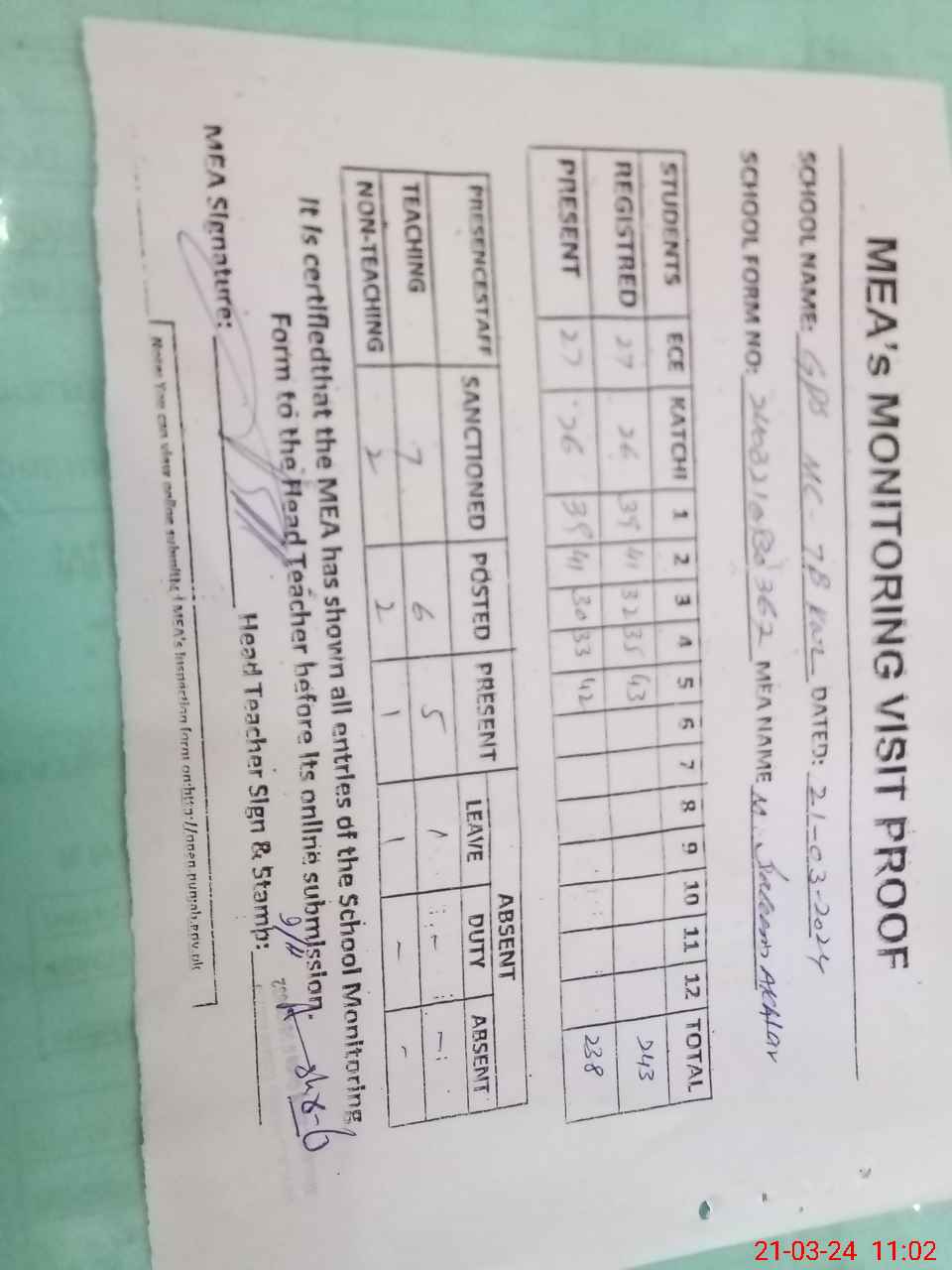 | EMIS Code: 36420632 | Name of School: GPS MC 7-B KHANEWAL | |||