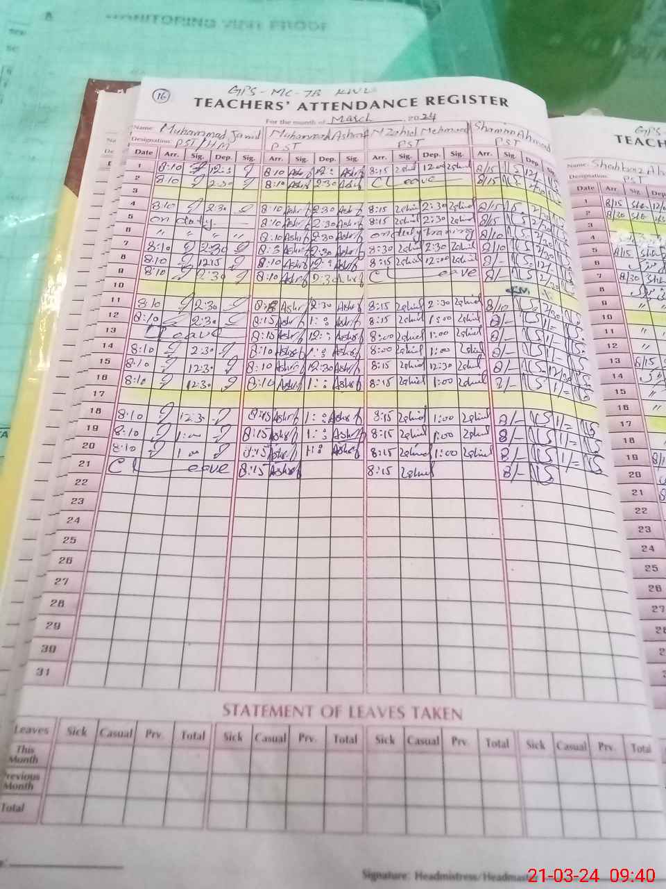 | Name: Mu**** Ja**** Designation: (School Headmaster's/Headmistress's) PST Phone/Cell Number: 03**** |