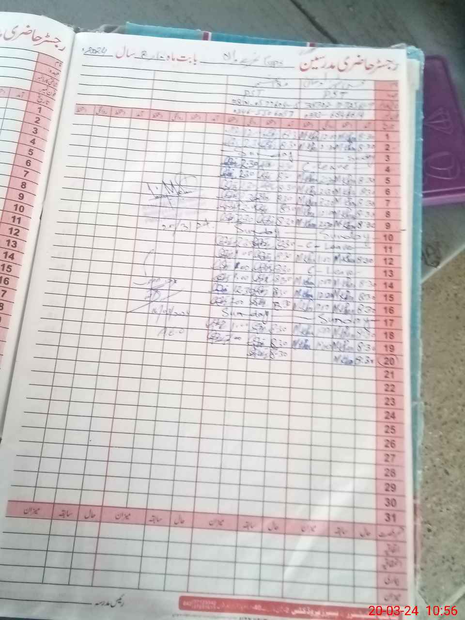 | CNIC | Full Name | Designation | R/C | Absence During Last Calender Month |