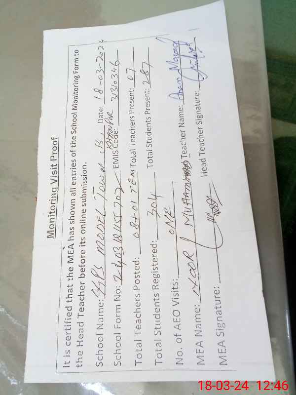 | Attendance Register | Head Teacher | MEA with School | Visit Proof |