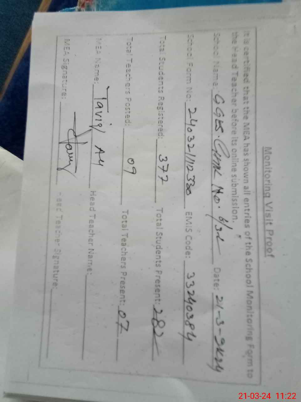 | Certified that this School was Inspected by the Undersigned MEA/DMO Today and the Information Stated Above is as Per Record. | |||||