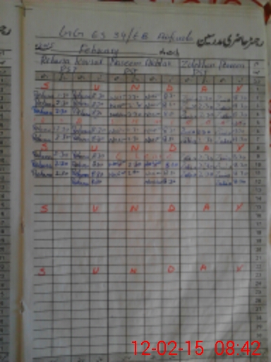 | CNIC | Full Name | Designation | R/C | Absence During Last Calender Month |