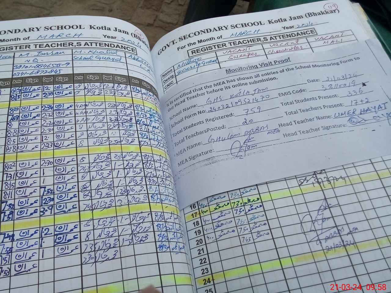 | Name: Um**** Ha**** Designation: (School Headmaster's/Headmistress's) Senior Head Master Phone/Cell Number: 03**** |