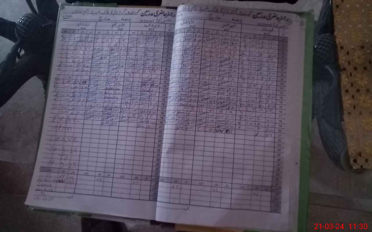 | CNIC | Full Name | Designation | R/C | Absence During Last Calender Month |