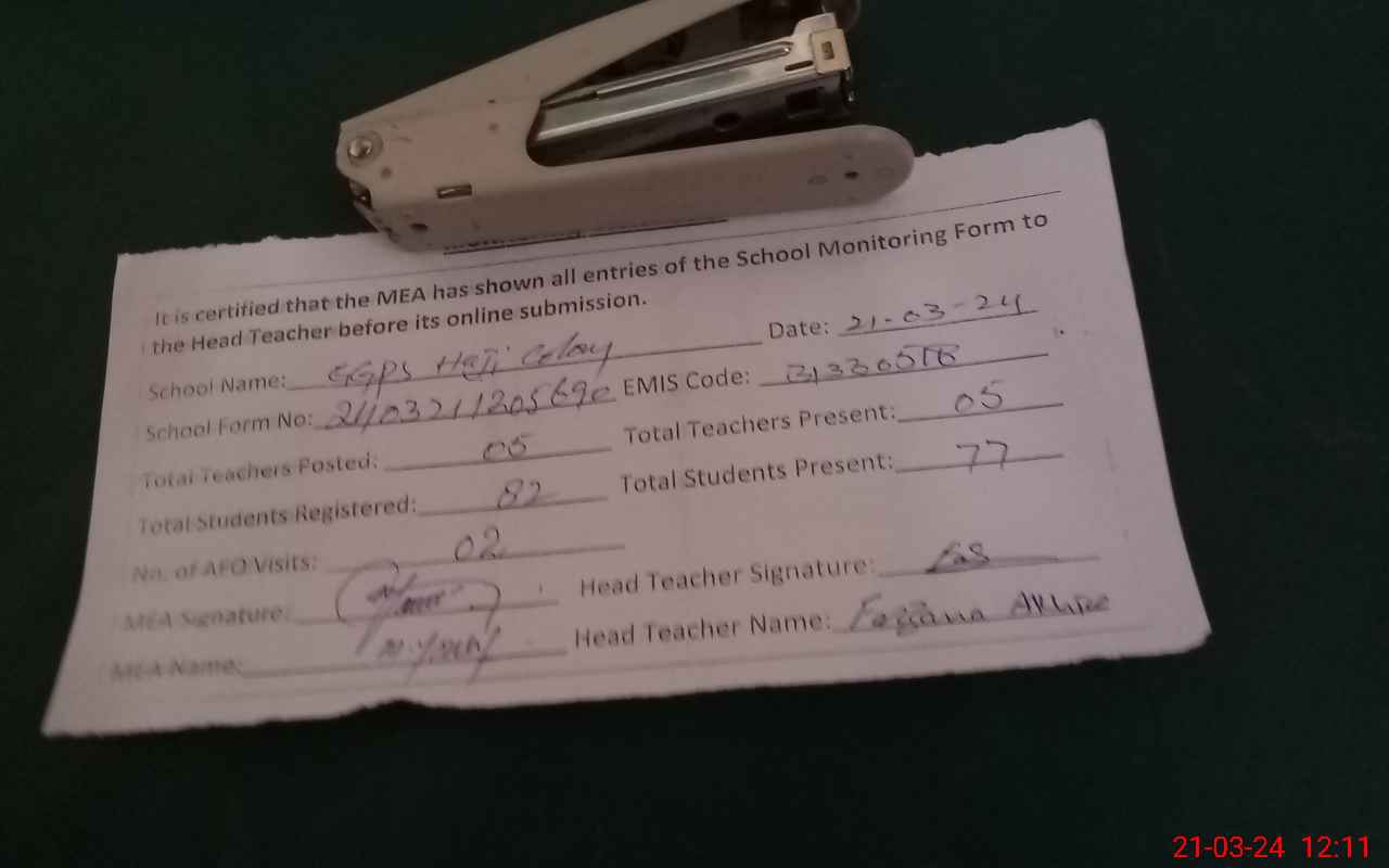 | Attendance Register | Head Teacher | MEA with School | Visit Proof |