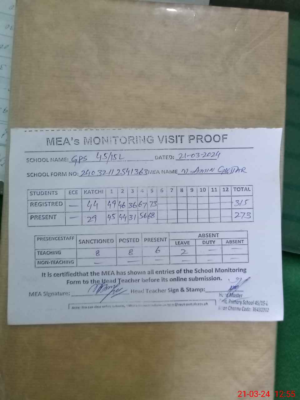| EMIS Code: 36430202 | Name of School: GPS 45/15-L, MIAN CHANNU | |||
