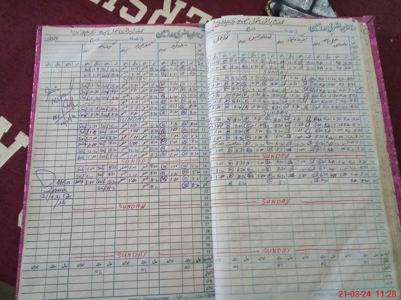 | CNIC | Full Name | Designation | R/C | Absence During Last Calender Month |