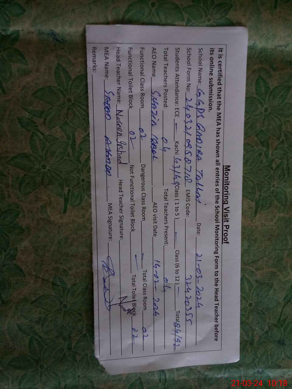 | EMIS Code: 32420355 | Name of School: GGPS QADIRA TALAI | |||