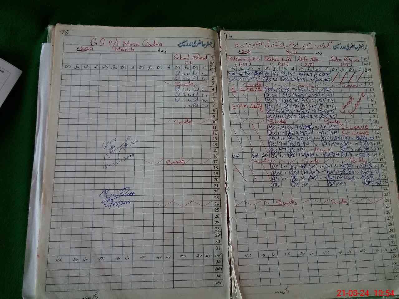| Leave | Duty | Absent | Maternity | Medical | Ex- Pak |