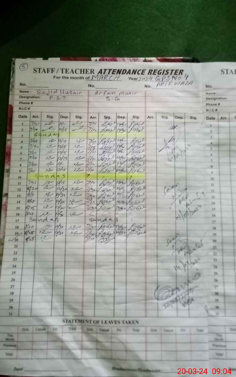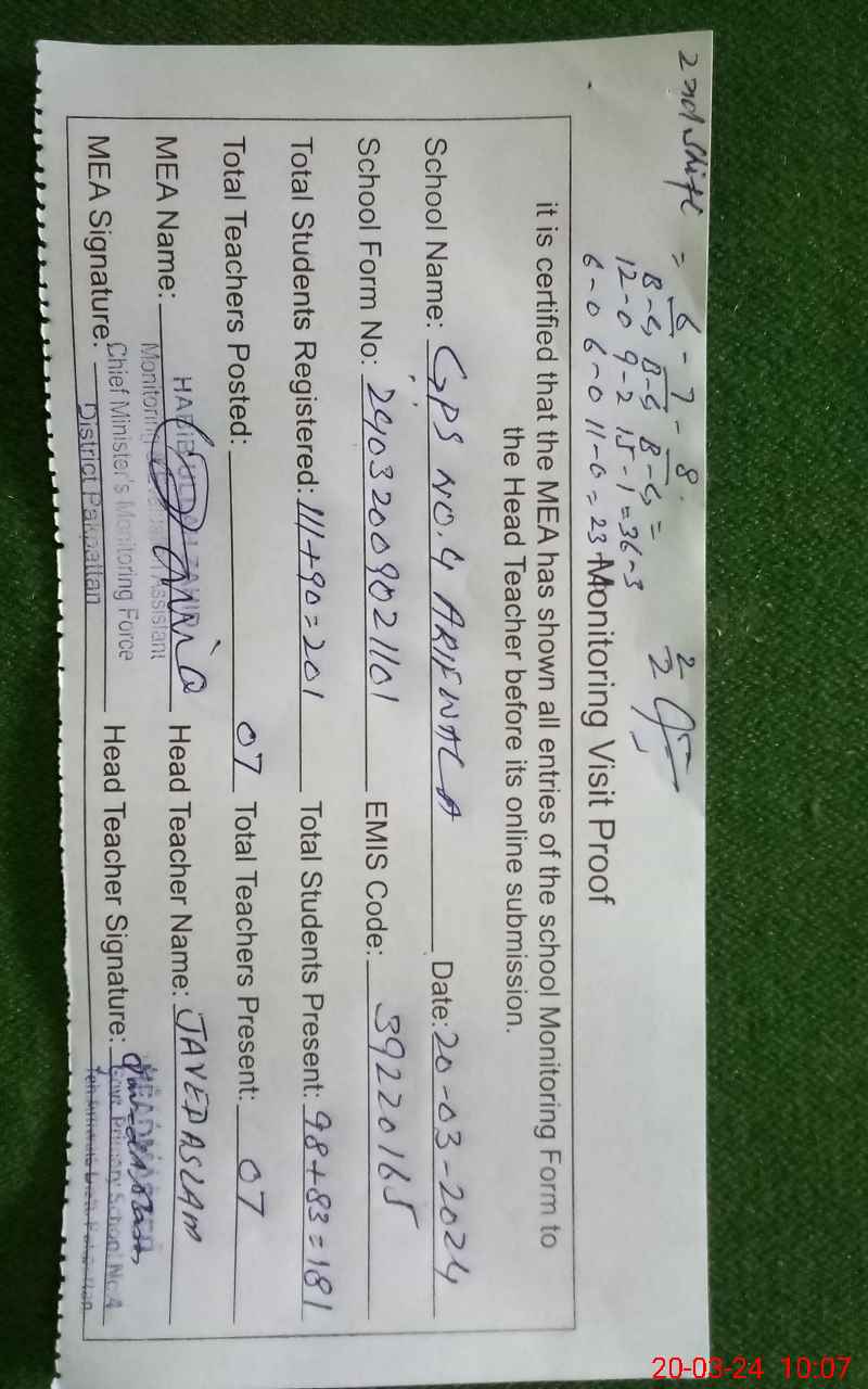 | EMIS Code: 39220165 | Name of School: GPS ARIF WALA NO 4 | |||