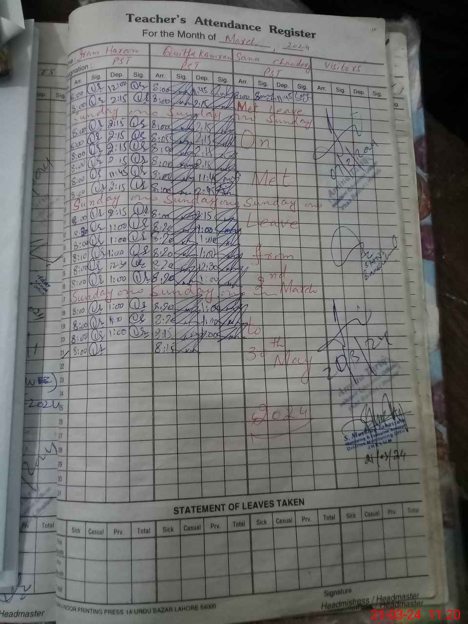 | Name: Ir**** Ha**** Designation: (School Headmaster's/Headmistress's) Headmistress Phone/Cell Number: 03**** |