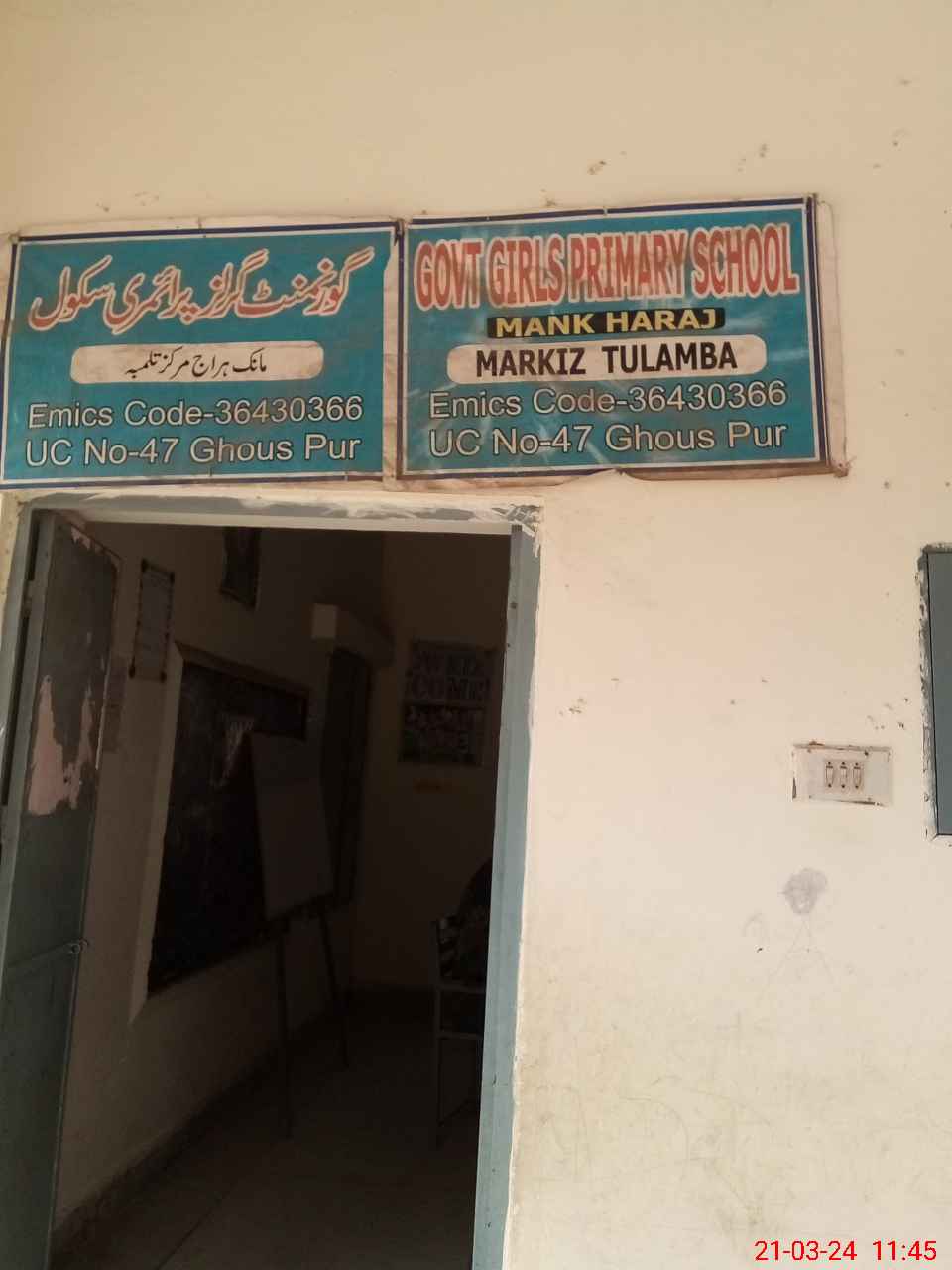| EMIS Code: 36430366 | Name of School: GGPS MANAK HERAJ, TULAMBA | |||