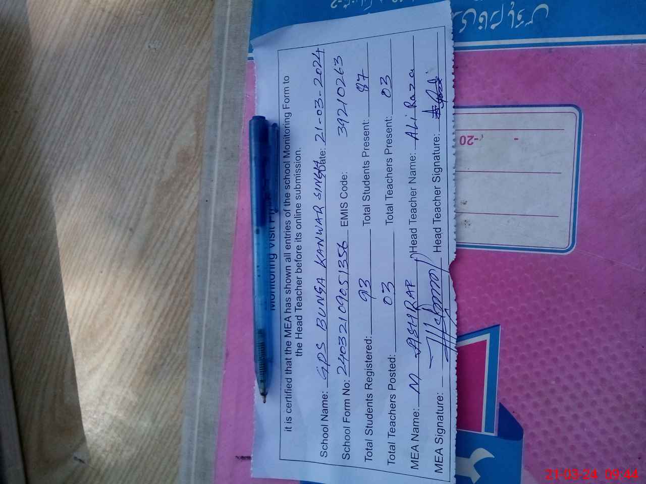 | EMIS Code: 39210263 | Name of School: GPS BUNGA KANWAR SINGH | |||