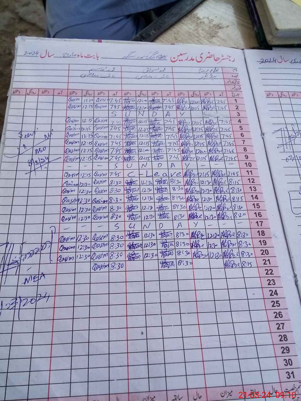 | CNIC | Full Name | Designation | R/C | Absence During Last Calender Month |