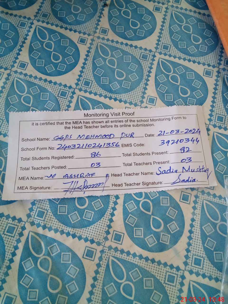 | EMIS Code: 39210344 | Name of School: GGPS MAHMOOD PUR | |||