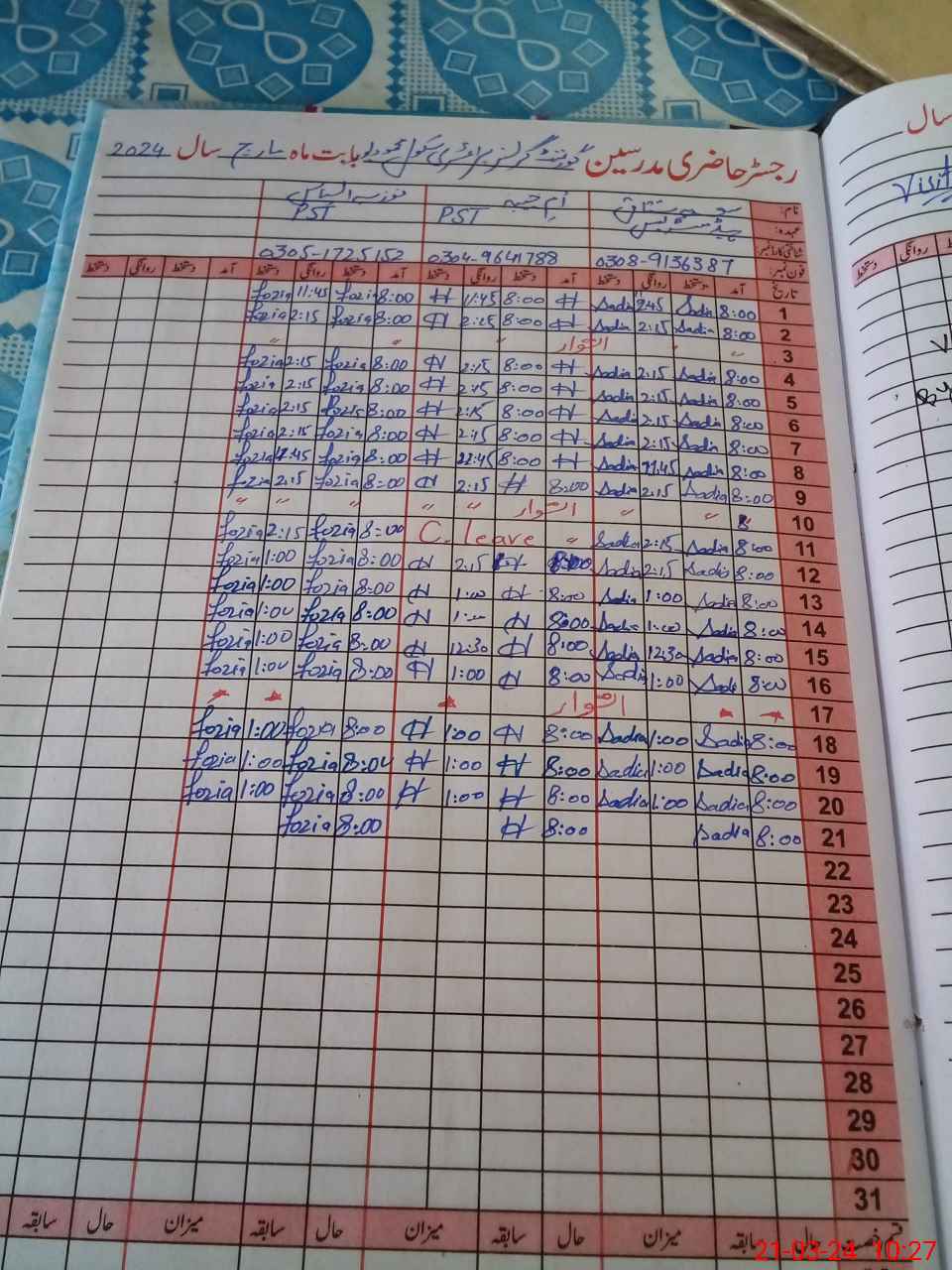 | Name: SA**** MU**** Designation: (School Headmaster's/Headmistress's) PST Phone/Cell Number: 03**** |