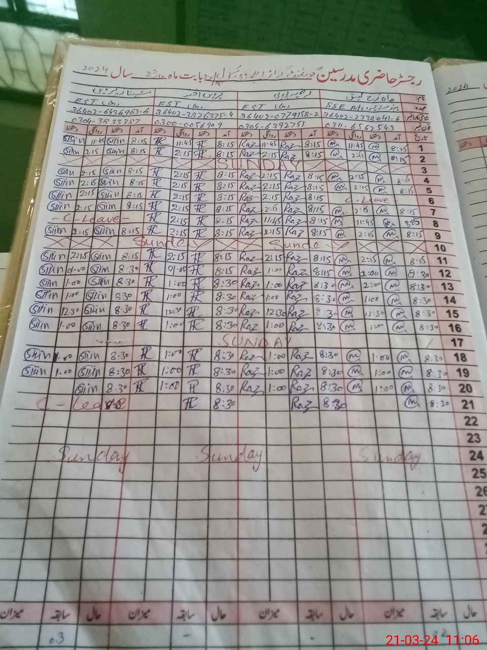 | CNIC | Full Name | Designation | R/C | Absence During Last Calender Month |