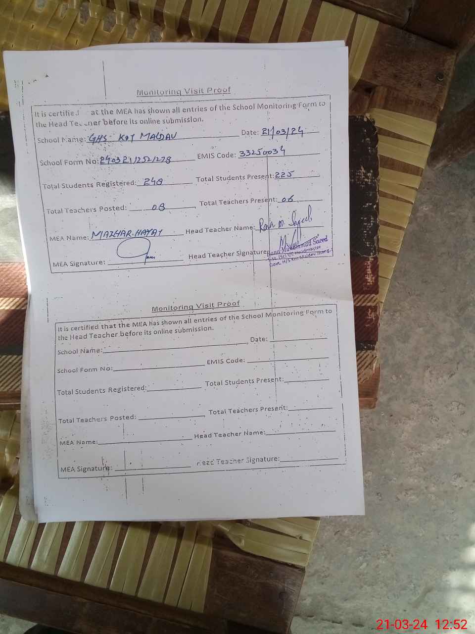 | EMIS Code: 33250034 | Name of School: GHS KOT MALDEV | |||