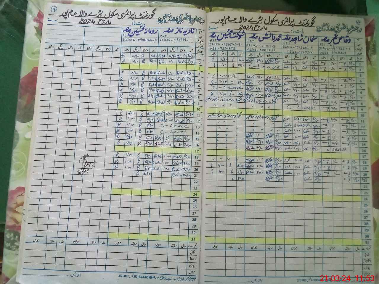 | CNIC | Full Name | Designation | R/C | Absence During Last Calender Month |