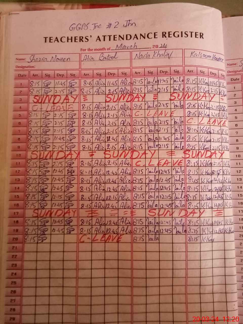| CNIC | Full Name | Designation | R/C | Absence During Last Calender Month |