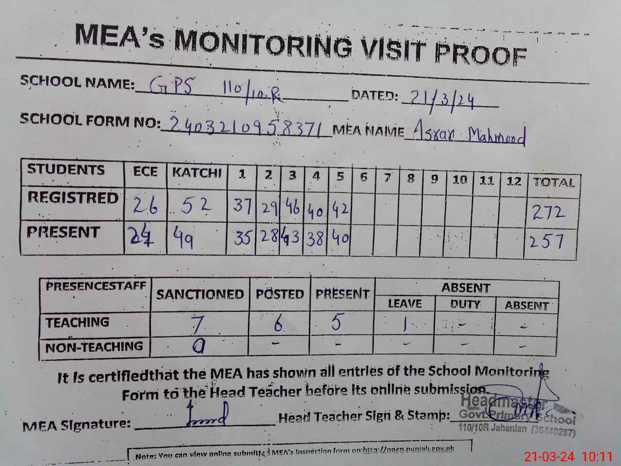 | EMIS Code: 36440287 | Name of School: GPS 110/10-R, JAHANIAN | |||