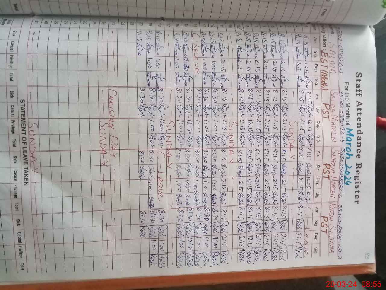 | 35**** | Uz**** Za**** | PST | Regular | 2 | 0 | 0 | 0 | 0 | 0 | 0 | 0 | 2 | Casual |
