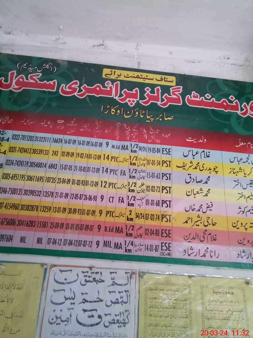 | EMIS Code: 39320998 | Name of School: GGPS SABIR PIA TOWN OKARA | |||
