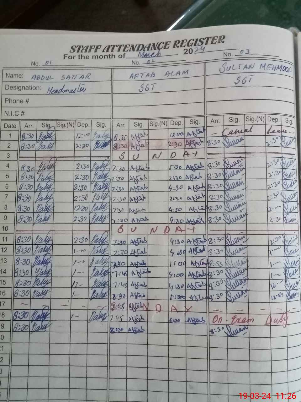 | 37**** | Mu**** Wa**** | PST | Regular | 0 | 0 | 0 | 0 | 0 | 0 | 0 | 0 | 0 | Exam Duty |