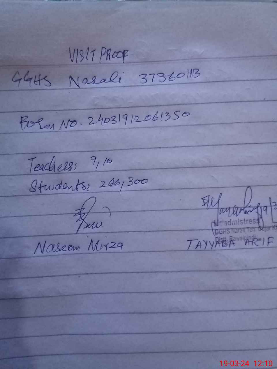 | Name: TA**** AR**** Designation: (School Headmaster's/Headmistress's) SSE ENGLISH Phone/Cell Number: 03**** |