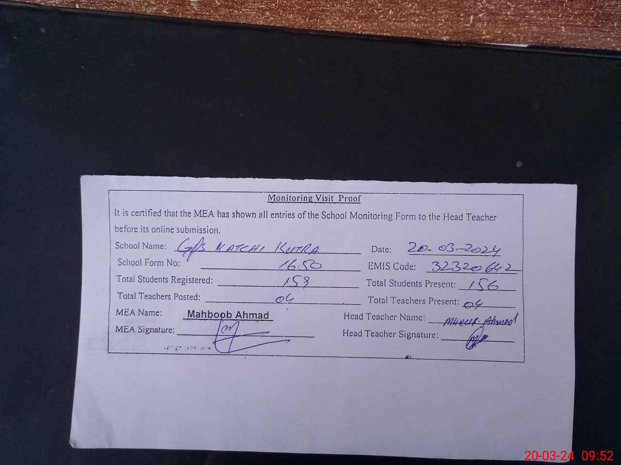 | EMIS Code: 32320642 | Name of School: GPS KACHI KUTRA | |||