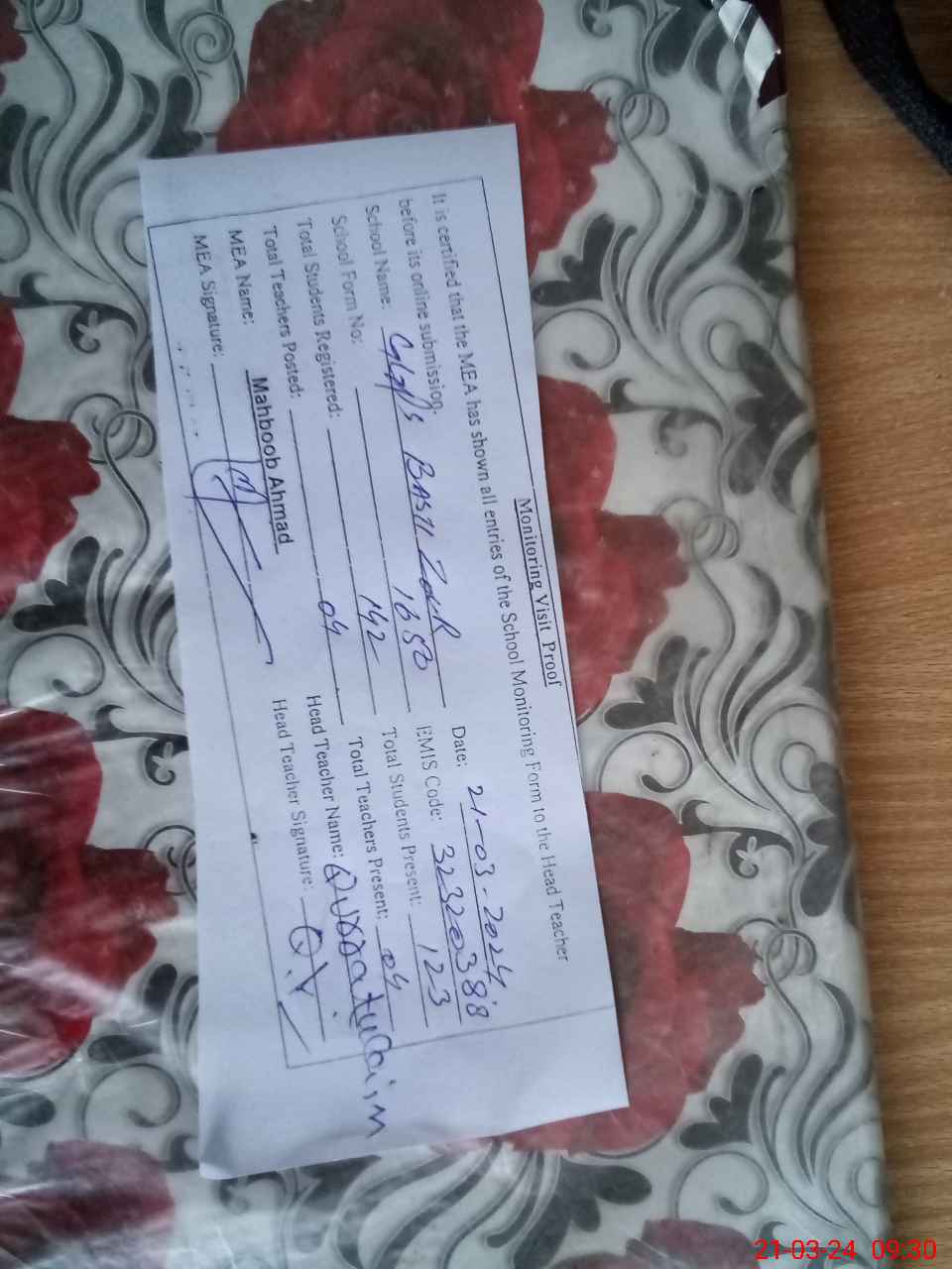 | EMIS Code: 32320388 | Name of School: GGPS BASTI ZOUR | |||