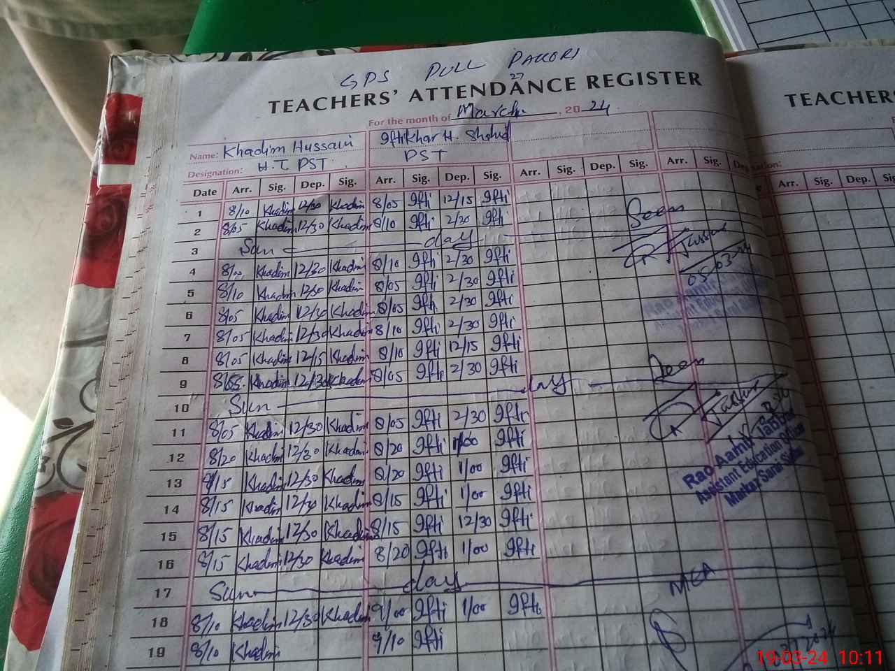 | Name: Kh**** Hu**** Designation: (School Headmaster's/Headmistress's) Pst Phone/Cell Number: 03**** |