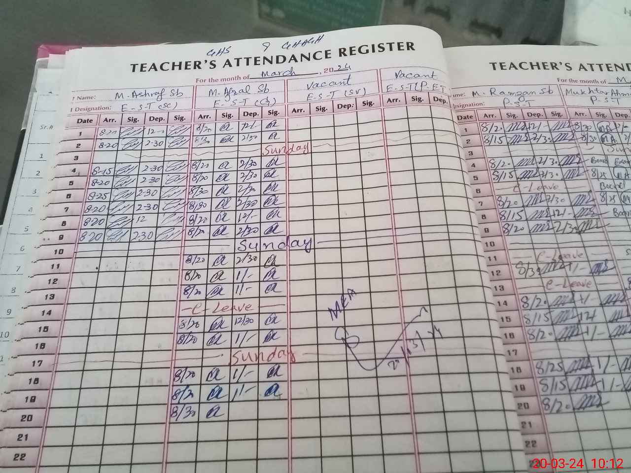 | 36**** | Sh**** Ka**** | 2 | 0 | 0 | 0 | 0 | 0 | 0 | 0 | 0 | 0 | Exam Duty | |