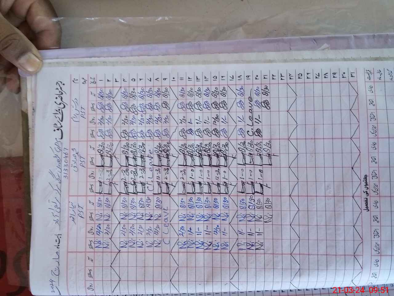 | CNIC | Full Name | Designation | R/C | Absence During Last Calender Month |