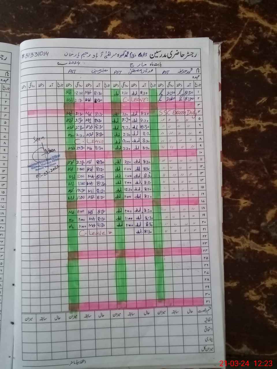 | 31**** | Mu**** Ho**** | PST | Regular | 1 | 6 | 0 | 0 | 0 | 0 | 0 | 0 | 1 | Exam Duty |