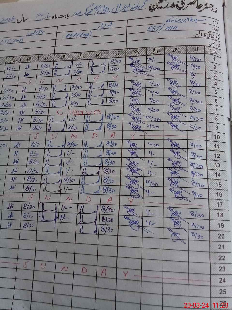 | 33**** | Gh**** Fa**** | SG | 0 | 20 | 0 | 0 | 0 | 0 | 0 | 0 | 0 | Absent (Un-Authorized) | |