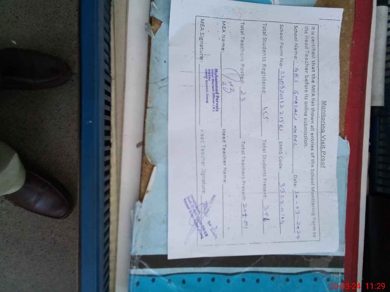 | Certified that this School was Inspected by the Undersigned MEA/DMO Today and the Information Stated Above is as Per Record. | |||||