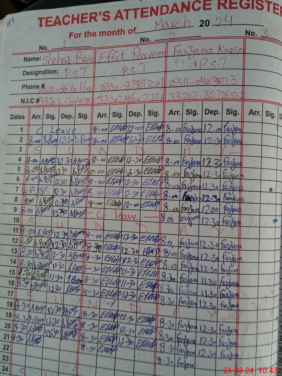 | Name: SH**** BA**** Designation: (School Headmaster's/Headmistress's) PST Phone/Cell Number: 03**** |